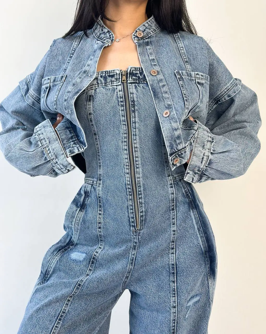 جنس: جین کش سایزبندی: فری مناسب: 36،38،40،42 قد کت: 45 سانت
